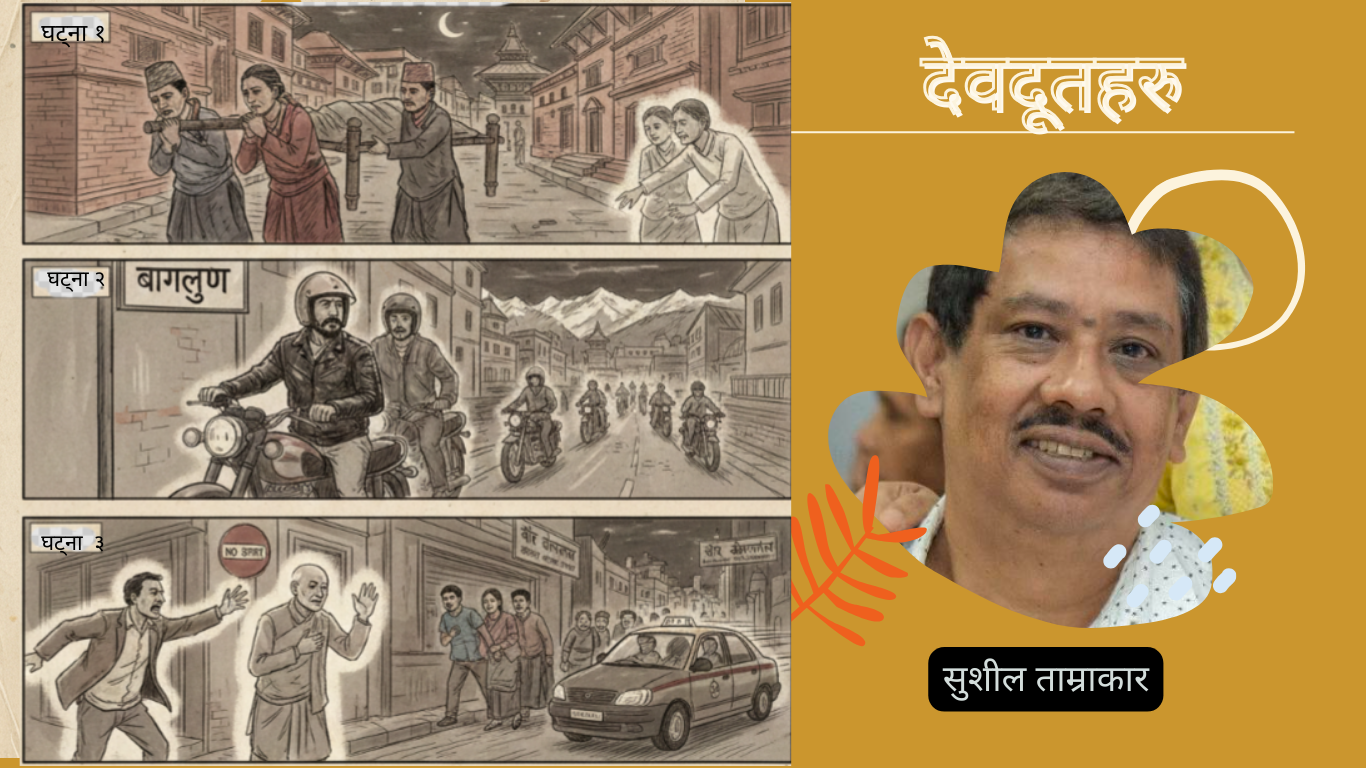 [caption id="attachment_13000" align="alignnone" width="150"] सुशील ताम्राकार[/caption] जिन्दगीको कुनै काल खण्डमा तपाईं हामीले कुनै बखत, आपतकालीन परिस्थितिमा अचानक नसोचेको-नचिताएको अपरिचित व्यक्ति टुप्लुक्क आइपुग्छ र शंकट टारइदिन्छ वा शंकट मुक्त हुन सहयोगी भैदिन्छ । अबश्य पनि तपाइँको जिन्दगीमा कहीं न कहीं यस्तो घट्ना घटेको हुनुपर्छ वा सुनेको हुनु पर्छ । मलाई लाग्छ ती अज्ञात ब्यक्तीहरु स्वयं भगवान नभए पनि देवदूत...  विस्तृतमा