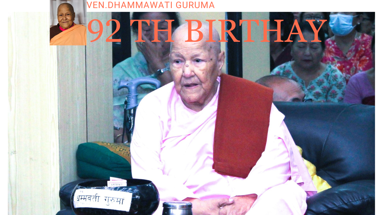 आदरणीय धम्मावती गुरुमाको ९२ औं वर्ष प्रवेशको यो सुखद अवसरमा, उहाँको सुस्वास्थ्य, दीर्घायु र हामी सबैलाई अझै धेरै वर्षसम्म उहाँको ज्ञान र प्रेरणा प्राप्त भइरहोस् भन्ने हार्दिक शुभकामना व्यक्त गर्दछौं। उहाँको जीवन हामी सबैका लागि प्रेरणाको स्रोत हो।