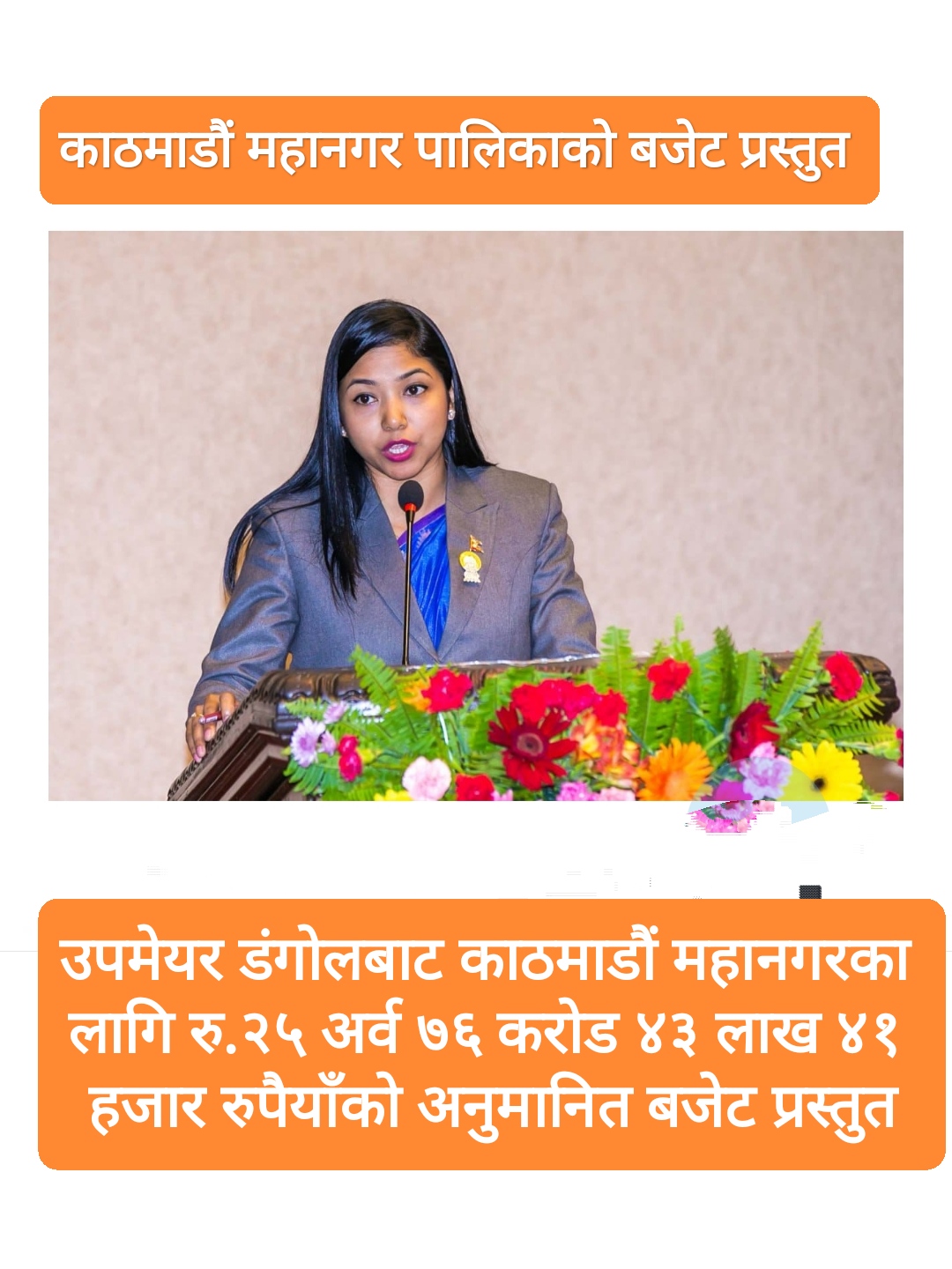 उपप्रमुख डंगोलबाट काठमाडौं महानगरका लागि रु.२५ अर्व ७६ करोड ४३ लाख ४१ हजार रुपैयाँको अनुमानित बजेट प्रस्तुत