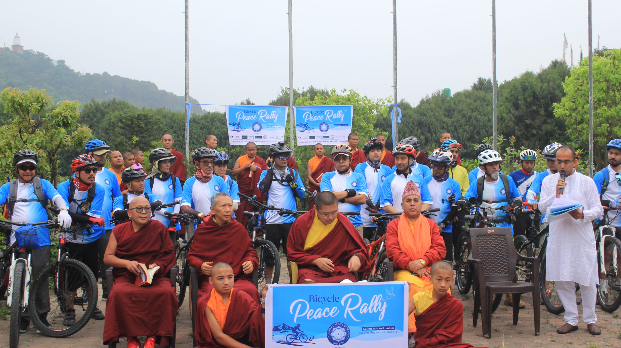 सुभाय् संवाददाता ,काठमाडौं/विश्वभर शान्ति, करुणा र सहअस्तित्वको सन्देश फैलाउने उद्देश्यका साथ सुरु भएको ‘शान्तिका लागि साइकल यात्रा’ को पहिलो दिन सफलतापूर्वक सम्पन्न भएको छ। महासिद्ध युनिभर्सल पिस स्यान्क्चुअरीद्वारा आयोजित यस ऐतिहासिक यात्रालाई आज बिहान स्वयम्भूमा एक विशेष समारोहका बीच विदाई गरियो।